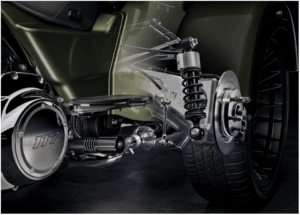 ワットリンクサスペンションという機構で、四輪車でも採用されている、横揺れ防止性、旋回性、カーブでの安定性に優れた機構となっています!